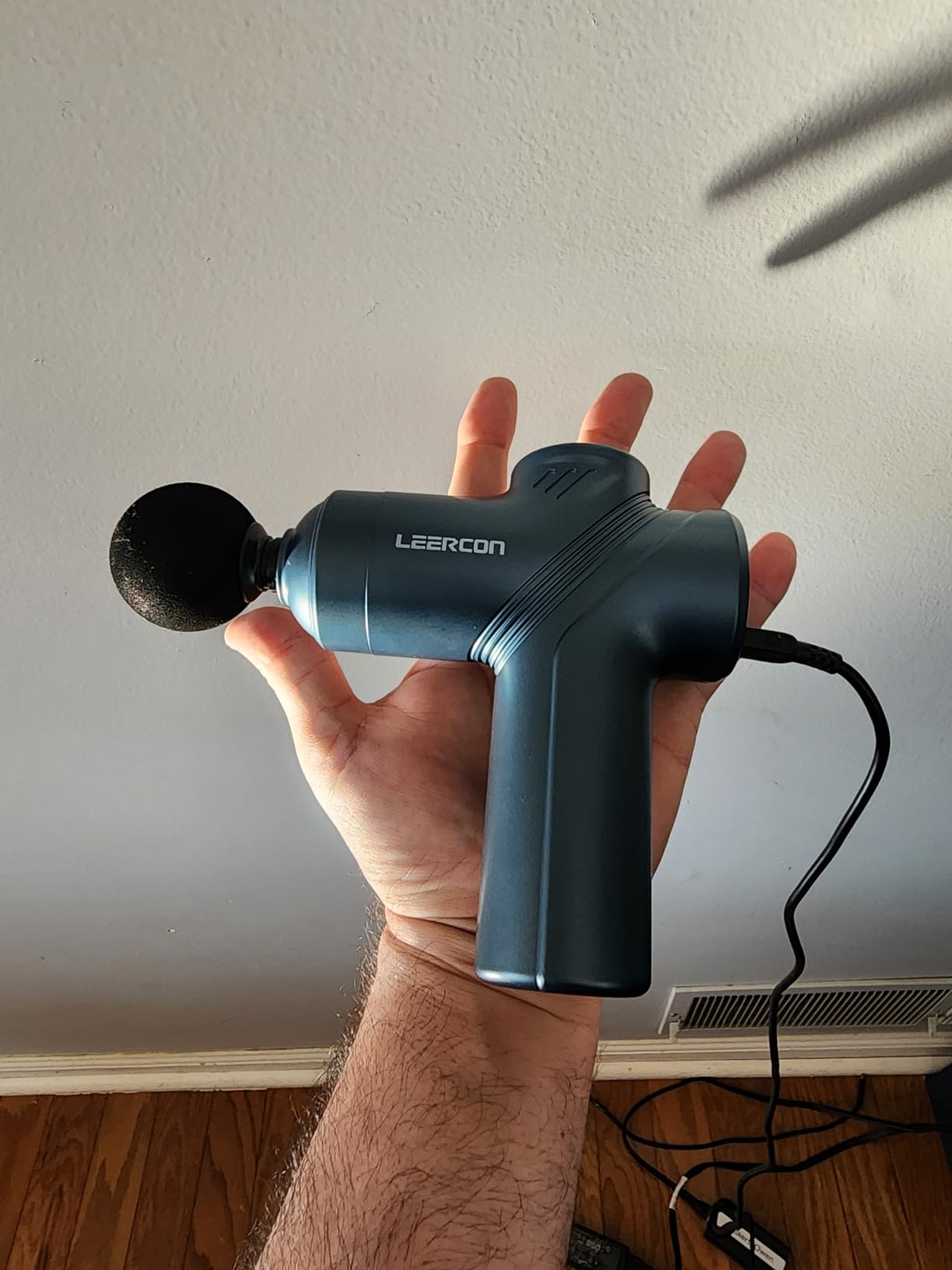 This massage gun works wonders after my workouts, really relieves sore muscles!